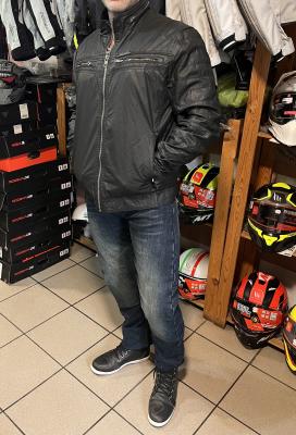 Ellasztikus modern szabású Kevlár erősített motoros farmer amely kényelmes viselet a motoron és a motorról leszállva is.